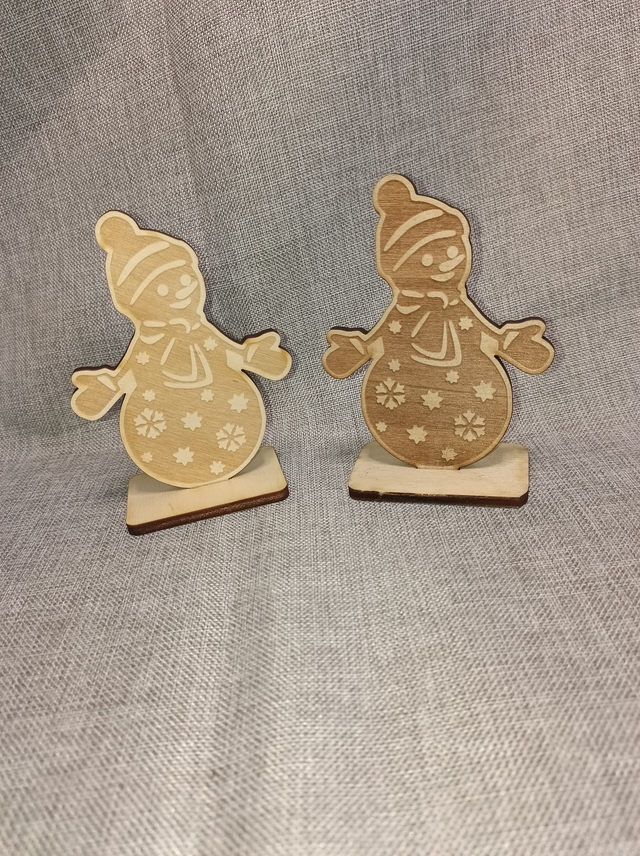 Bonhomme de neige à poser. Comme vous le voyez sur la photo, selon la couleur et les veines du bois, la gravure est plus ou moins foncé